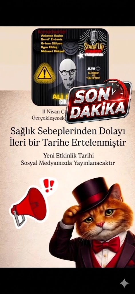 Komedi tutkunlarının heyecanla beklediği etkinlikten üzücü haber geldi. 11 Nisan Cumartesi günü saat 20.00’de gerçekleşmesi planlanan Ali Biber ile “Çık Anlat” Stand-Up Yarışması, beklenmedik bir engel […]