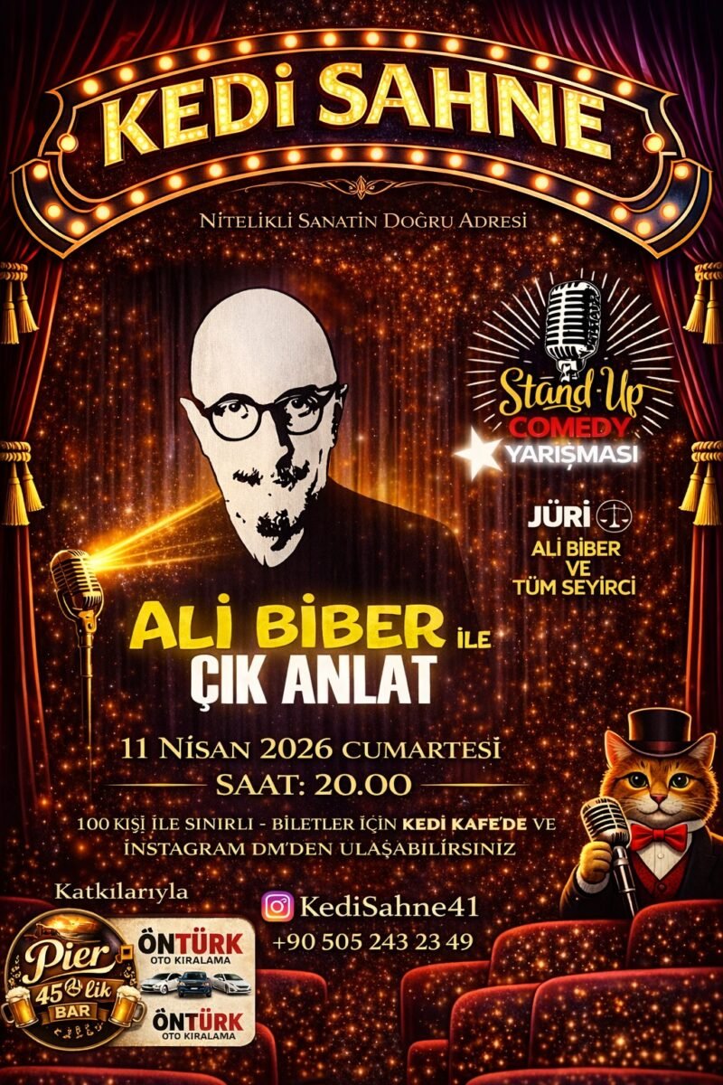 Kocaeli’nin sanat duraklarından Kedi Sahne, 11 Nisan Cumartesi akşamı sıra dışı bir etkinliğe ev sahipliği yapmaya hazırlanıyor. Tiyatro Astakos’un vizyoner isimlerinin katkılarıyla düzenlenen “Ali Biber ile Çık Anlat” Stand-Up Yarışması, bölgedeki komedi meraklılarını bir araya getirecek.