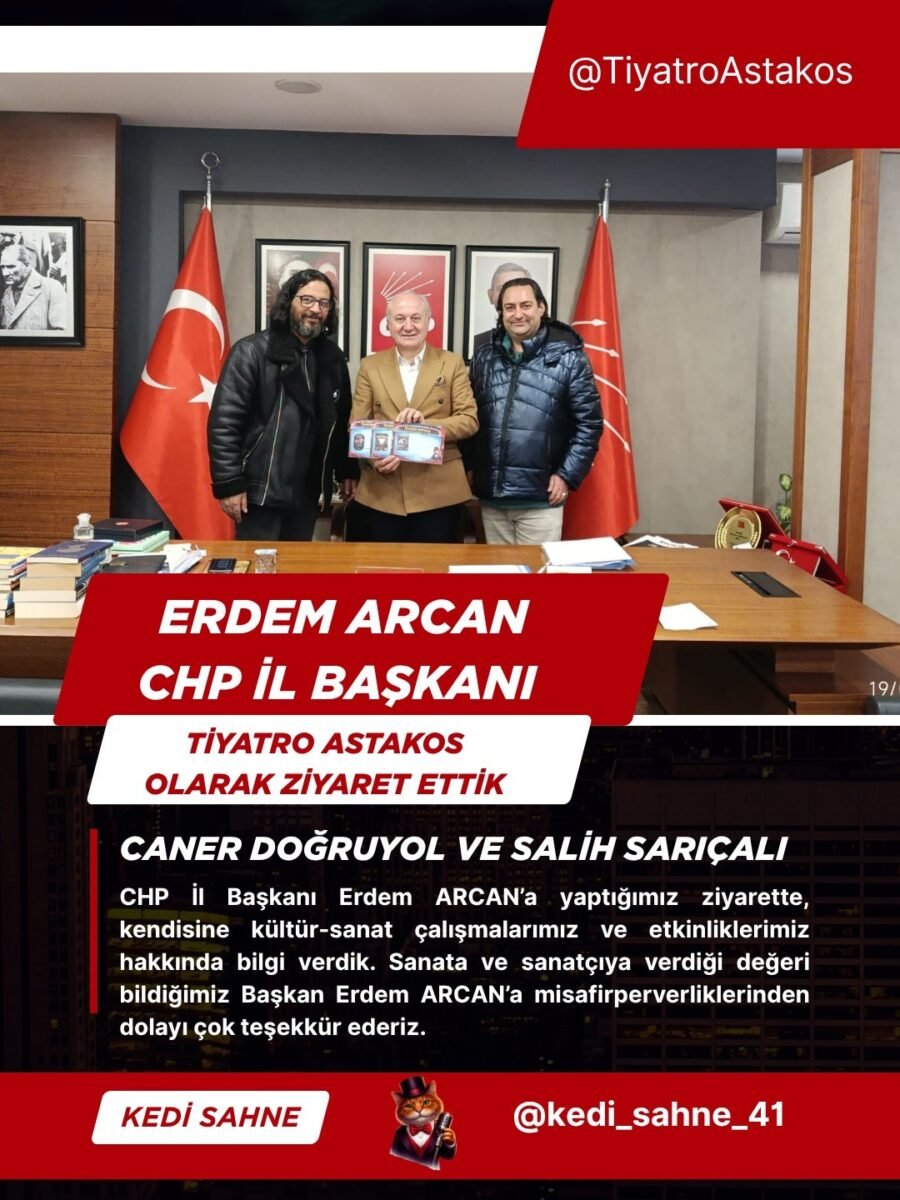 Sanata Destek ve İş Birliği Mesajı Ziyaret sırasında Sayın Erdem Arcan’a, Tiyatro Astakos ve Kedi